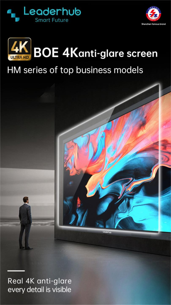 The Leaderhub Business Top Configuration HM series is equipped with a BOE high-color-gamut 4K anti-glare screen with a resolution of up to 3840×2160, presenting vivid colors and extraordinary expressive power. Whether displaying PPT, playing videos, or conducting remote meetings, the pictures are delicate and clear, bringing an immersive visual feast. The anti-glare design, combined with an intelligent light sensor system, can effectively reduce reflections under strong light, allowing participants to see the content clearly from every angle. The low-blue-light eye protection technology adopted can fully protect the eyes even with long-term use. Equipped with a 50-megapixel ultra-high-definition camera, it captures every frame in detail, upgrading the visual experience of remote meetings. The 8-array microphone supports 8-meter long-distance sound pickup, and AI sound source localization can capture meeting speakers in real time, making remote communication more efficient and meeting sound transmission clearer.