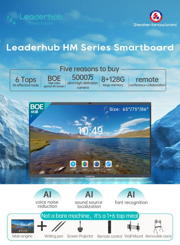 The biggest highlight of the Leaderhub HM series is its powerful AI computing power of 6 TOPS (trillions of operations per second). Cooperating with Tencent Yuanbao, it can easily handle various complex AI tasks such as voice noise reduction, sound source localization, and font recognition, showing remarkable technological charm. The AI voice noise reduction function filters background noise to ensure clear meeting speeches. The sound source localization technology intelligently identifies the speaker’s position and adjusts the sound pickup direction in real time, making the sound of remote meetings feel like being there in person. AI font recognition converts handwritten content into electronic text in real time, facilitating editing and sharing, and improving meeting recording efficiency. It is worth mentioning that the HM series also integrates AI effective tools and cooperates with Tencent Yuanbao to push the level of AI intelligence to a new height.