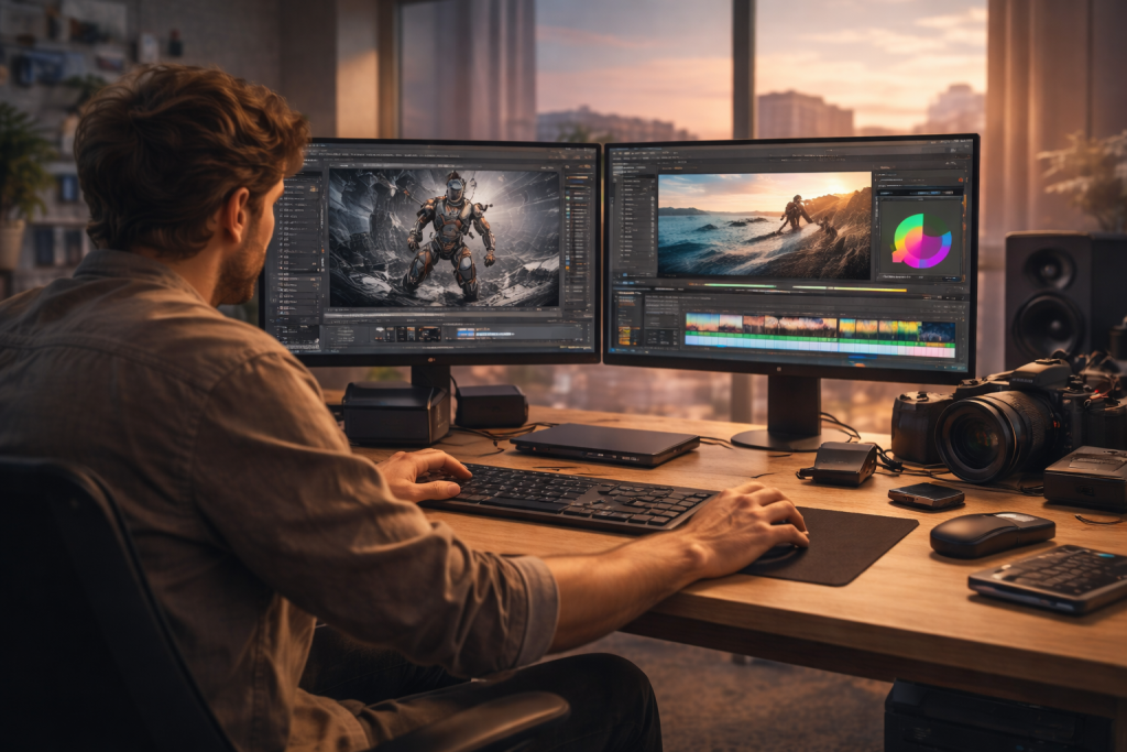 ·Display outputs: multi-monitor support matters for editing (timeline + fullscreen preview + assets).