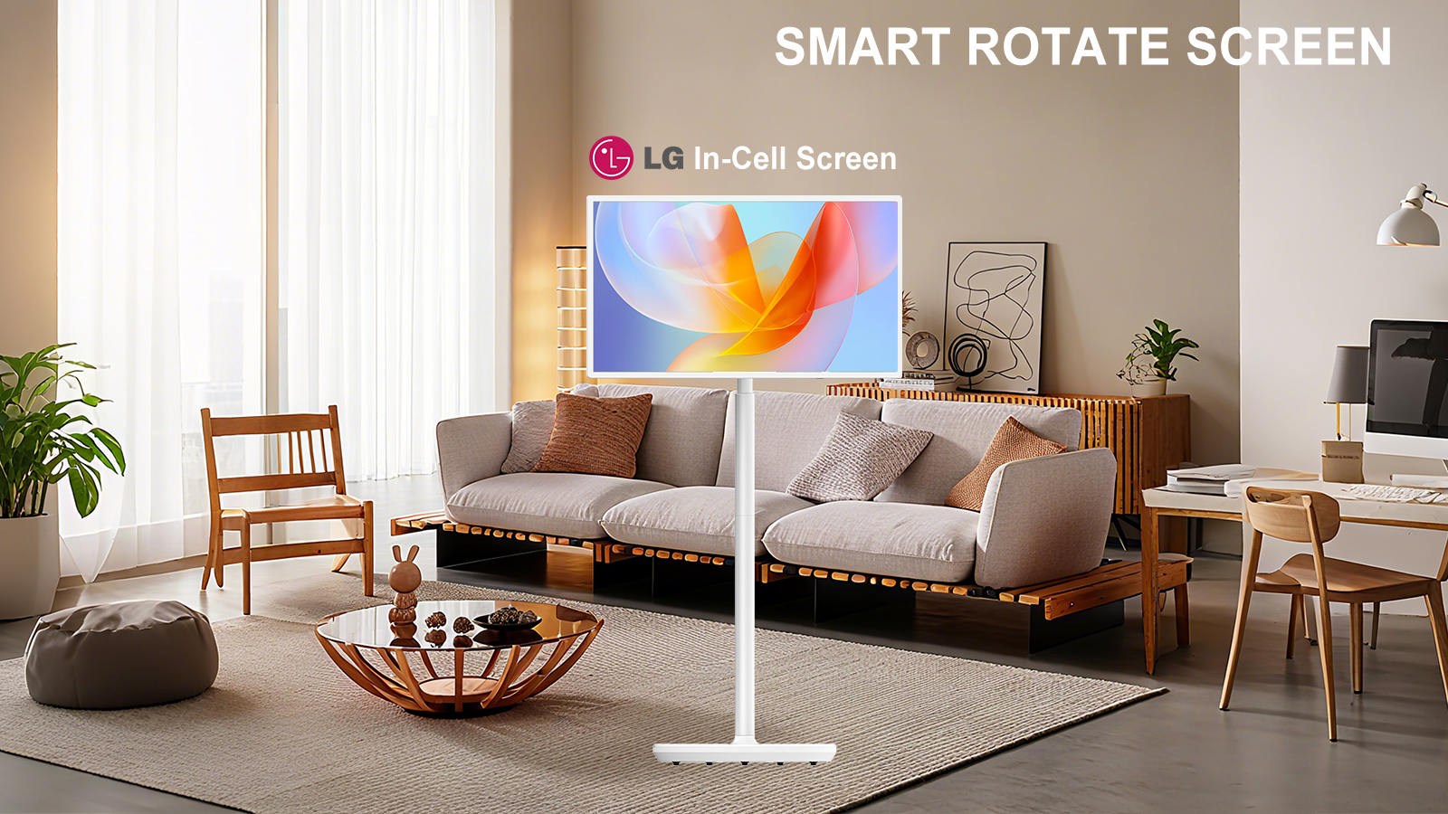 • INCELL HD ten-point capacitive touch LCD.Rotate leftwards/rightwards at 90° , automatic switch between landscape and portrait mode.Adjustable pitching angle.Simple tablet operation display interface.High-quality stereo speakers, output power can reach 2x8W.Bases with omni-directional wheels, move much easier.Wired/wireless screen projection.Androidl10 OS.Support HDMI, Type-c, USB2.0,USB3.0 HD video interfaces.Built-in high-performance dual-frequency WIFI antenna.Power output of Type-c source interface: maximum 15W.Type-c screen projection reverse control.