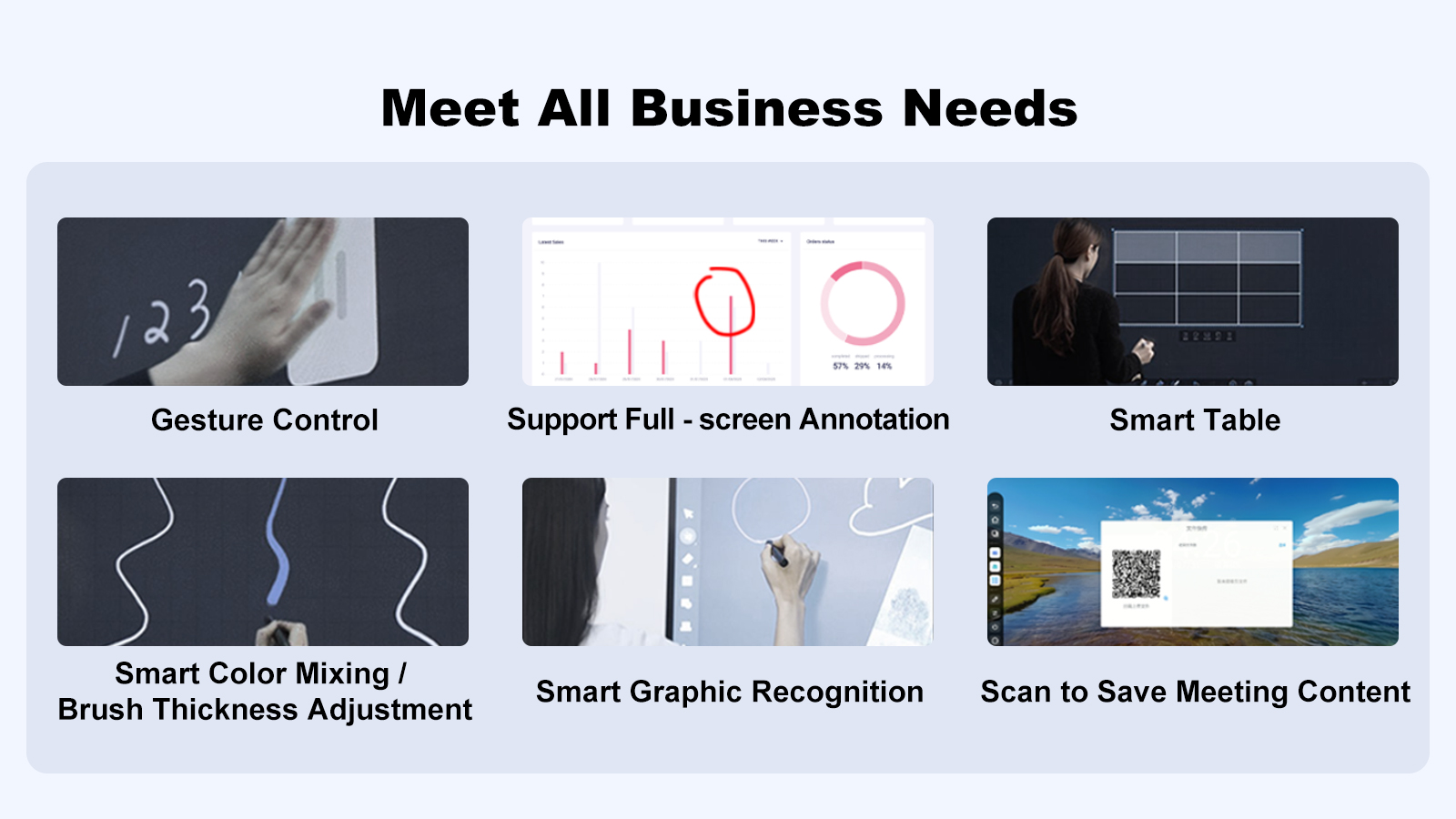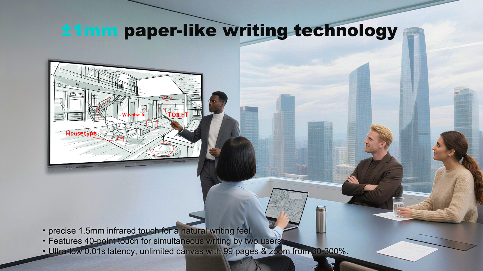 | Touch System | Sensing type: Infrared touch Touch tool: Passive infrared pen Touch response time: ≤10 ms |